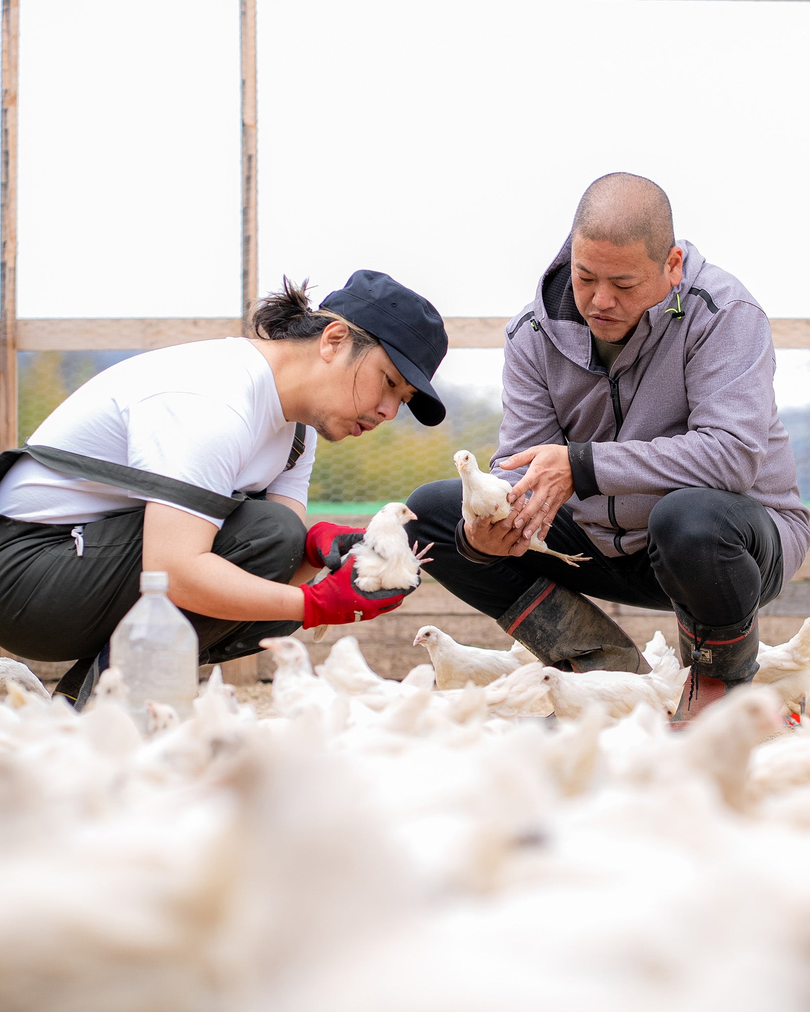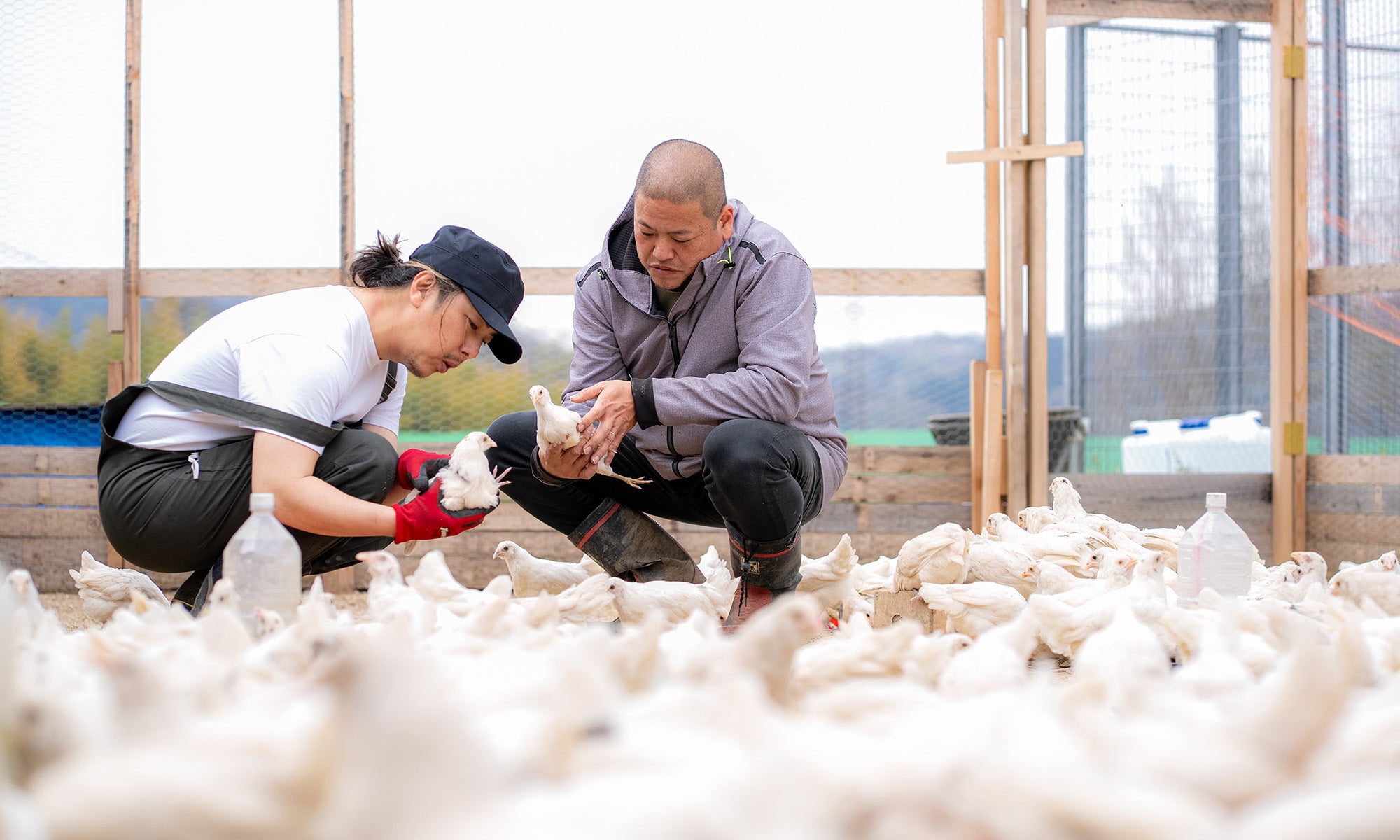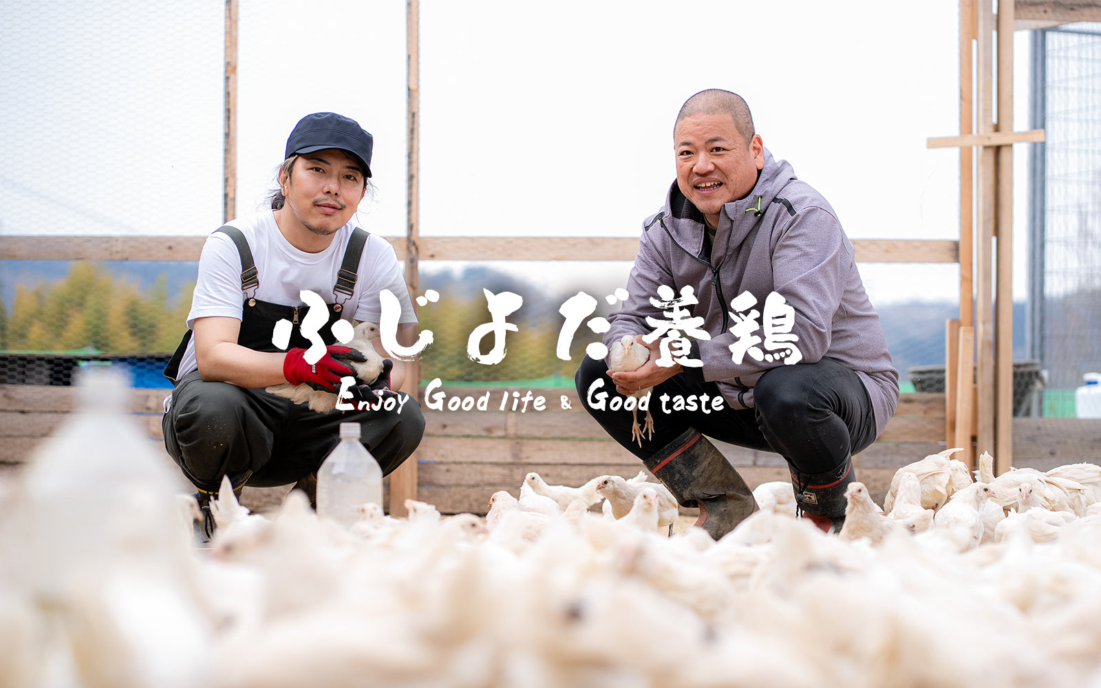 尊延寺の休耕地から始まったふじよだ養鶏場。電気・ガス・水道もない場所を活かし、小屋を自ら建て平飼いを実現。臆病なアローカナがのびのびと育つ環境を重視し、手間を惜しまず健康な卵を追求しています。