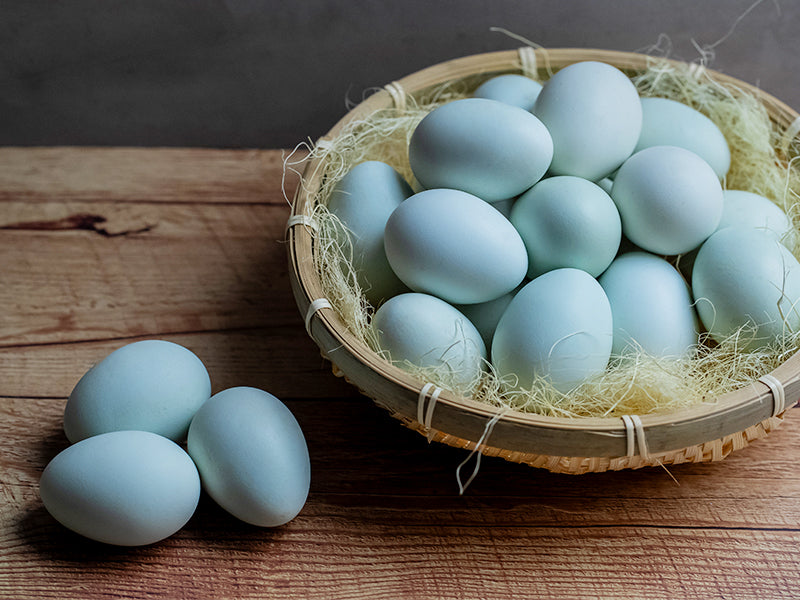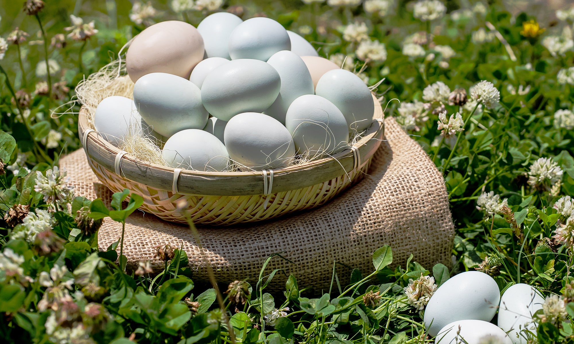 自然溢れる環境の中ですくすくと育つ希少な鶏、アローカナが産み落とす卵。その魅力には“美しさ”と“味わい”の両方があります。淡いエメラルドグリーンのような色の殻、その美しさから「幸せの青い卵」とも呼ばれています。