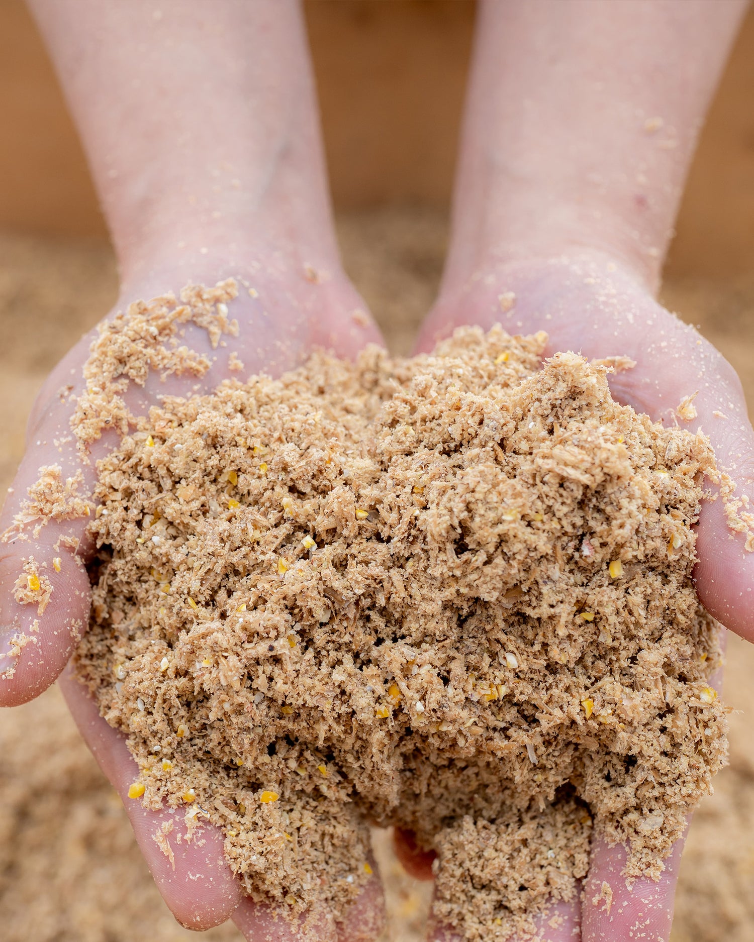 “格別な卵の味”を最大ふじよだ養鶏場で生み出される“卵の美味しさ”の理由は一切の妥協を許さない環境づくりや餌作りにあります。限に引き出すために、鶏たちに与える飼料は、すべて手作りで自家配合。牡蠣殻、大麦、ぬか、有機野菜、動物性たんぱく質などを独自にブレンドし、発酵させたものを与えています。鶏の腸内環境を整え、健やかな成長と美味しさを引き出すための工夫。