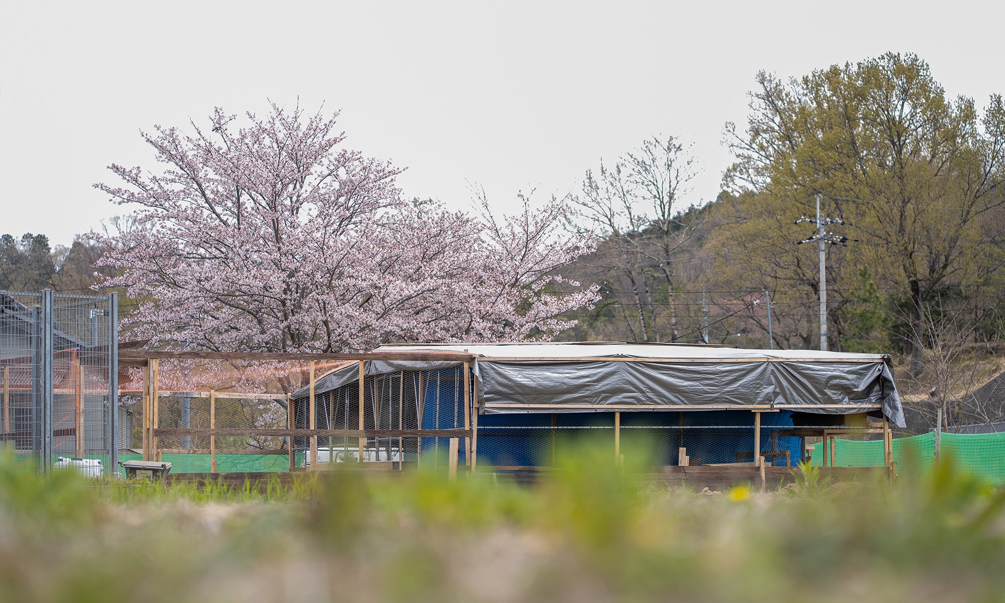 私たちが養鶏場づくりをスタートする前、この場所は、何もない尊延寺の休耕地でした。電気もガスも、水道もない。かえってこの環境が「自分たちらしい養鶏ができる環境かもしれない」と感じたのです。元工務店であった園主の知識と経験を活かしながら、ゼロから自分たちで小屋を建て、資材を工夫。灼熱の太陽が降り注ぐ暑い日も、しんしんと雪が降り積もる極寒の冬の日も、試行錯誤を重ねに重ね、ようやく現在の「ふじよだ養鶏場」が誕生しました。アローカナの鶏たちが暮らすのは、狭く身動きすらできないケージではなく、太陽の光と清い山風が通る平飼いの環境です。